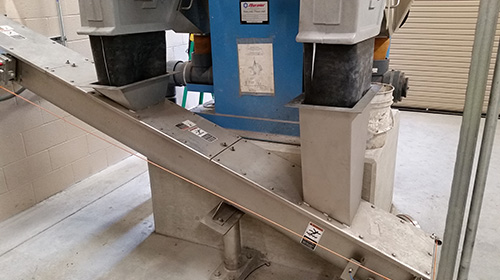 傾斜式螺旋輸送機的入口由旋轉(zhuǎn)式壓力機供給